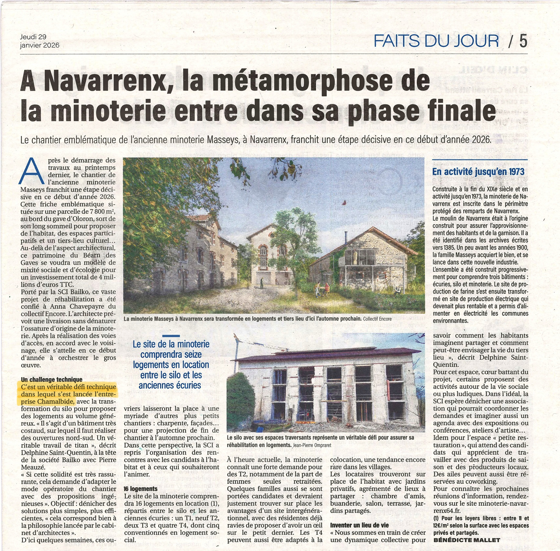 L’ensemble des ouvrages de gros œuvre, jambages et linteaux béton étant laissés apparents, le chantier a nécessité une exigence élevée sur les coffrages et les finitions, dans un contexte de structure existante fortement contrainte.